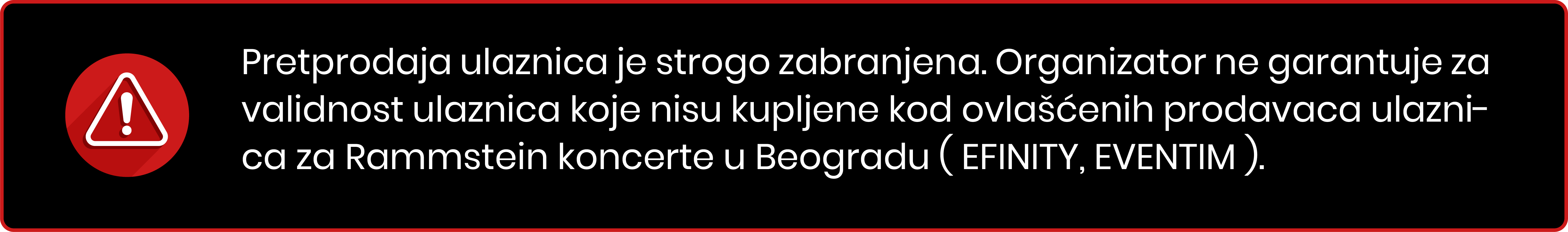 - Posetioci su podložni pravilima aktuelnog kućnog reda na mestu održavanja događaja, tj. u Ušće Park-u tokom Događaja. Aktuelna verzija kućnog reda biće prikazana na internet stranici Organizatora ( https://skymedia.rs/dogadjaji/rammstein-beograd2024/ ) i na mestu održavanja događaja.